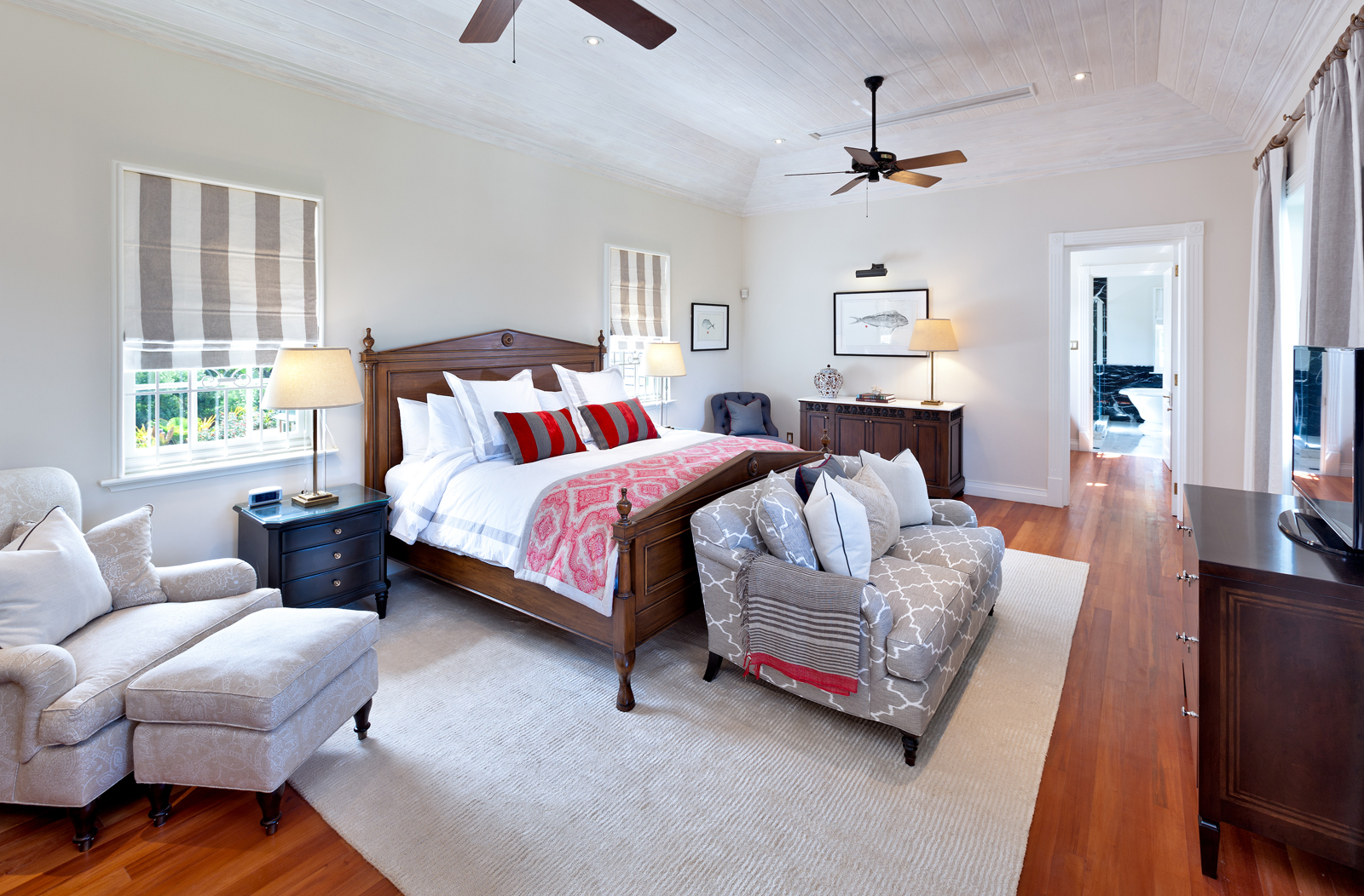 The five bedroom suites are all air-conditioned and have their own ensuite marble bathrooms. On the upper level of the villa you will find the master suite with a expansive patio and two further bedroom suites each with their own private patio. Whilst on the ground level are the further two bedrooms one of which allows for direct access to the pool deck and gardens.