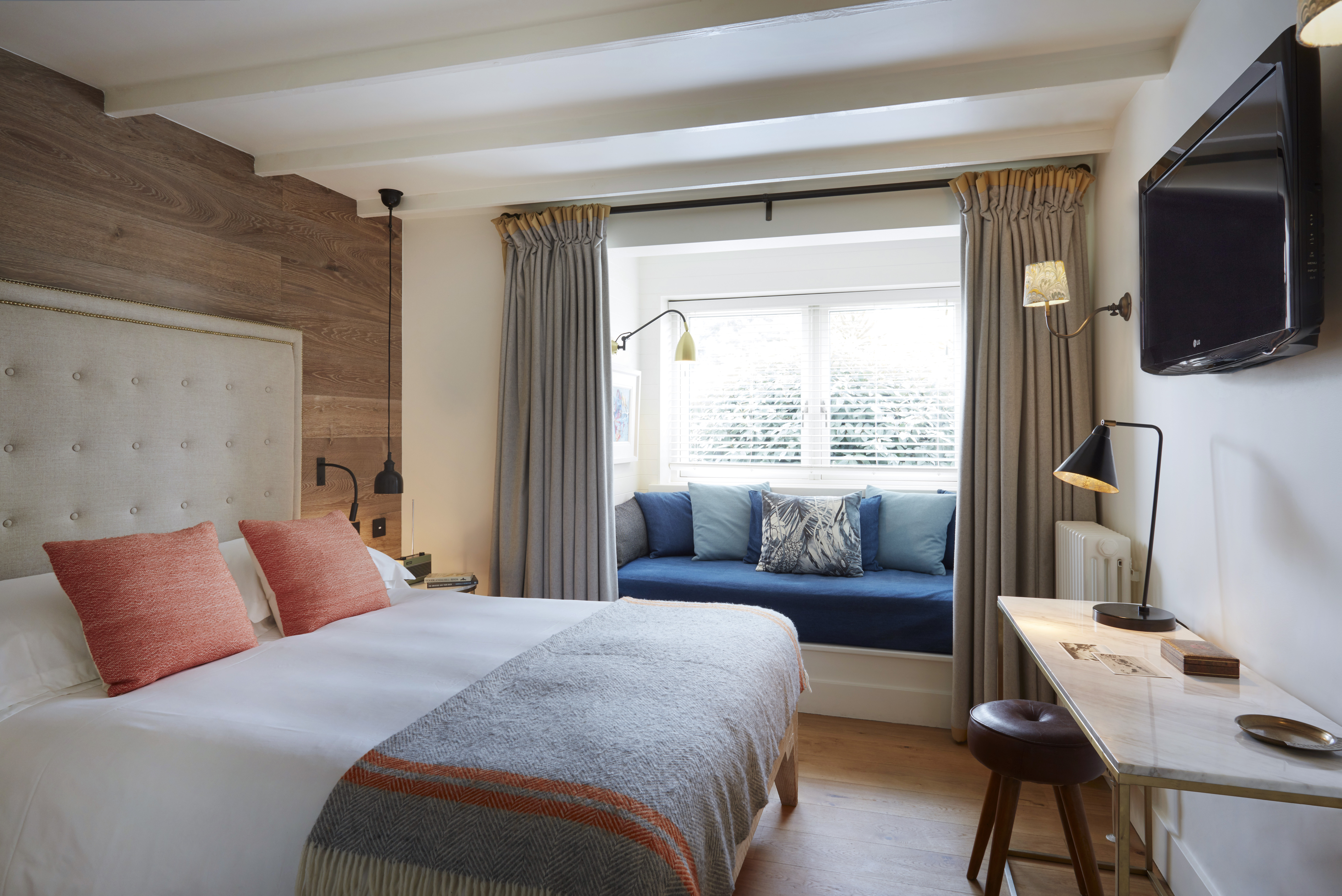 At the bar, you’ll find a classic yet cosy retreat, with sumptuous dark leathers and natural textile furnishings. The hotel is proud to offer the biggest English wine list in the UK, each one there by merit, with the chance at 5pm each day for guests to try a glass on the house.