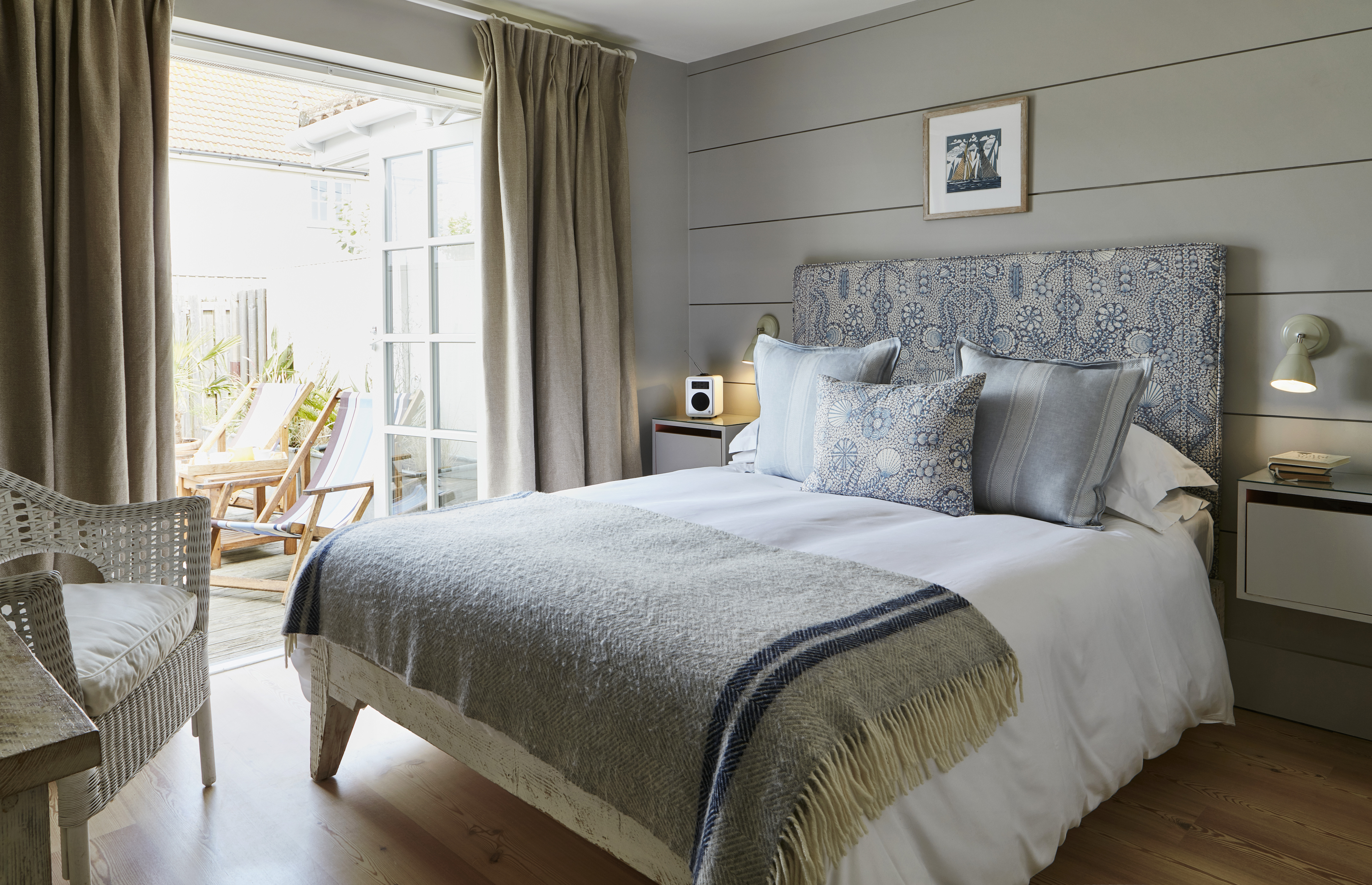 With cool coastal themes and colours, the guest rooms are each unique in design, with stylish features, such as oversized, intricately decorated headboards and quirky framed vintage swimsuits. Many also have a private furnished deck, perfect to relax and enjoy a coffee or locally sourced glass of wine, whilst soaking up the sunshine and the views. Luxury Garden rooms are the largest in size, with sliding doors revealing a rolltop bathtub and French doors leading down to the coastal garden.