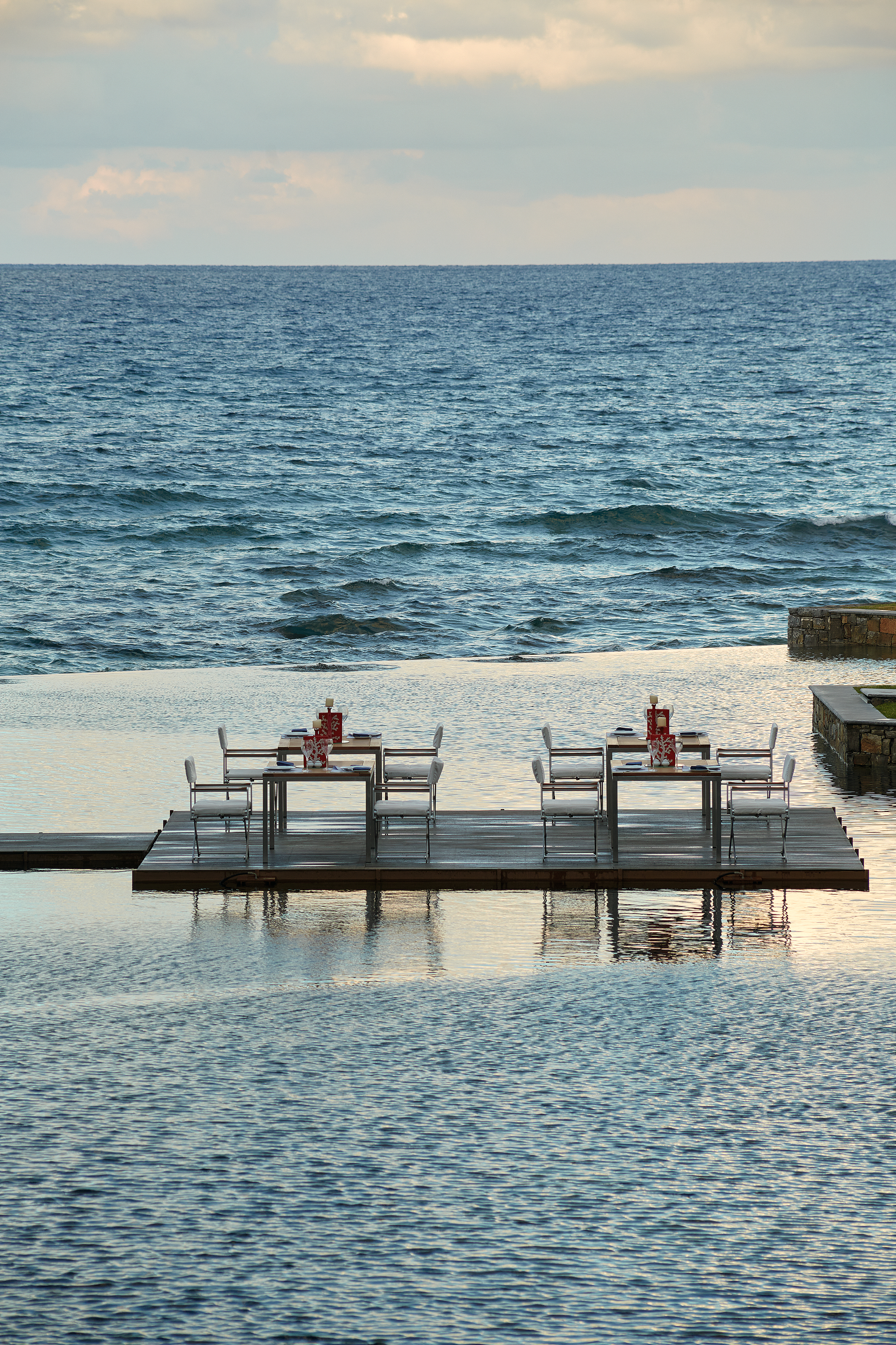 Of course, you’ll find a choice too of Cretan cuisine and traditional Greek fish favourites, with amazing settings from beachfront to a floating platform over the lagoon. A unique experience is also available at the local Agreco farm Taverna, which highlights the farm to table concept with fresh ingredients on the curated seasonal menu. For refreshments, savour a cocktail by the pool by day, at the beach bar at sunset or in one of the trendy sunken lounges on a balmy evening.