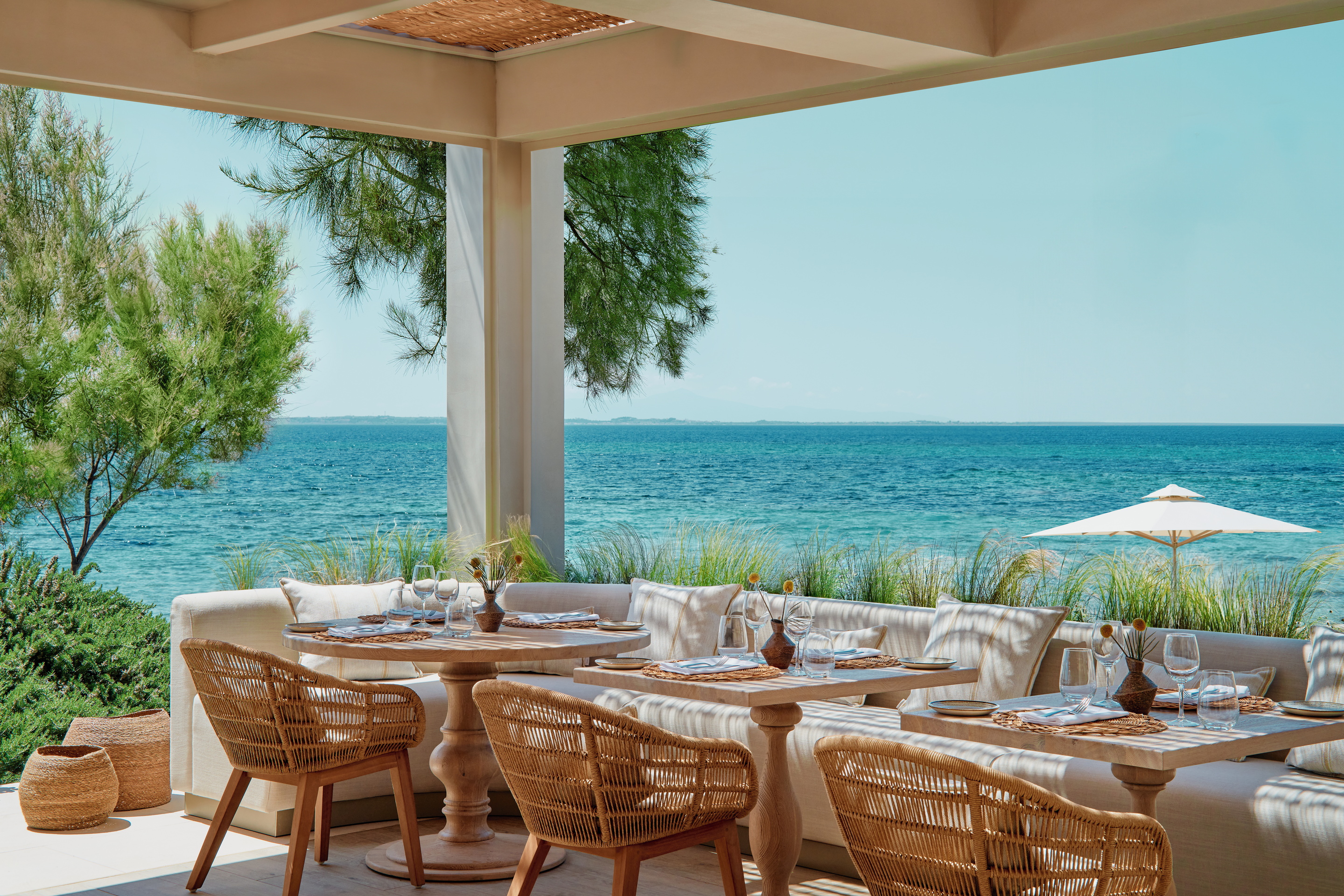 Beyond the glistening waters of the Aegean and the secluded white sand beaches, the elegant Ikos Olivia is set in acres of landscaped gardens, dotted with olive trees. You’ll find stylish and contemporary designed bedrooms, with floor to ceiling windows, opening up to impressive views. Superior rooms, Suites and Bungalows are also available, for discerning clients looking for a more spacious retreat, with a furnished balcony or even a private pool.
