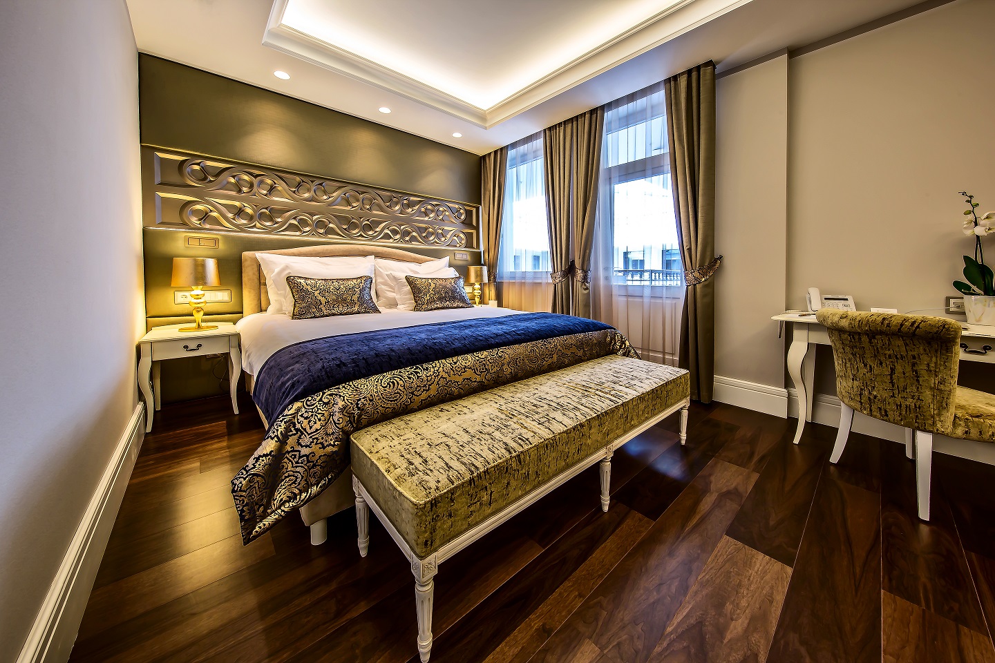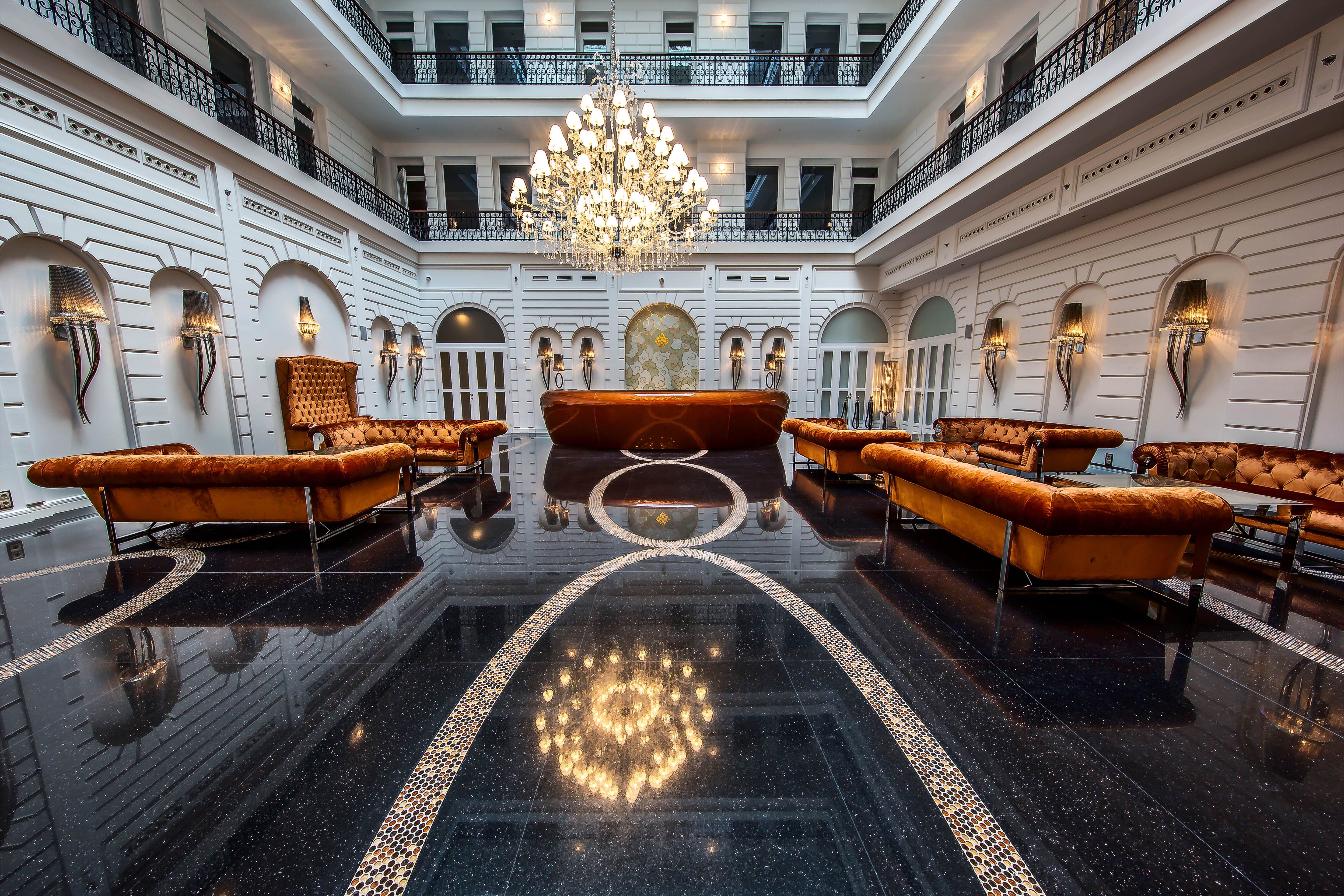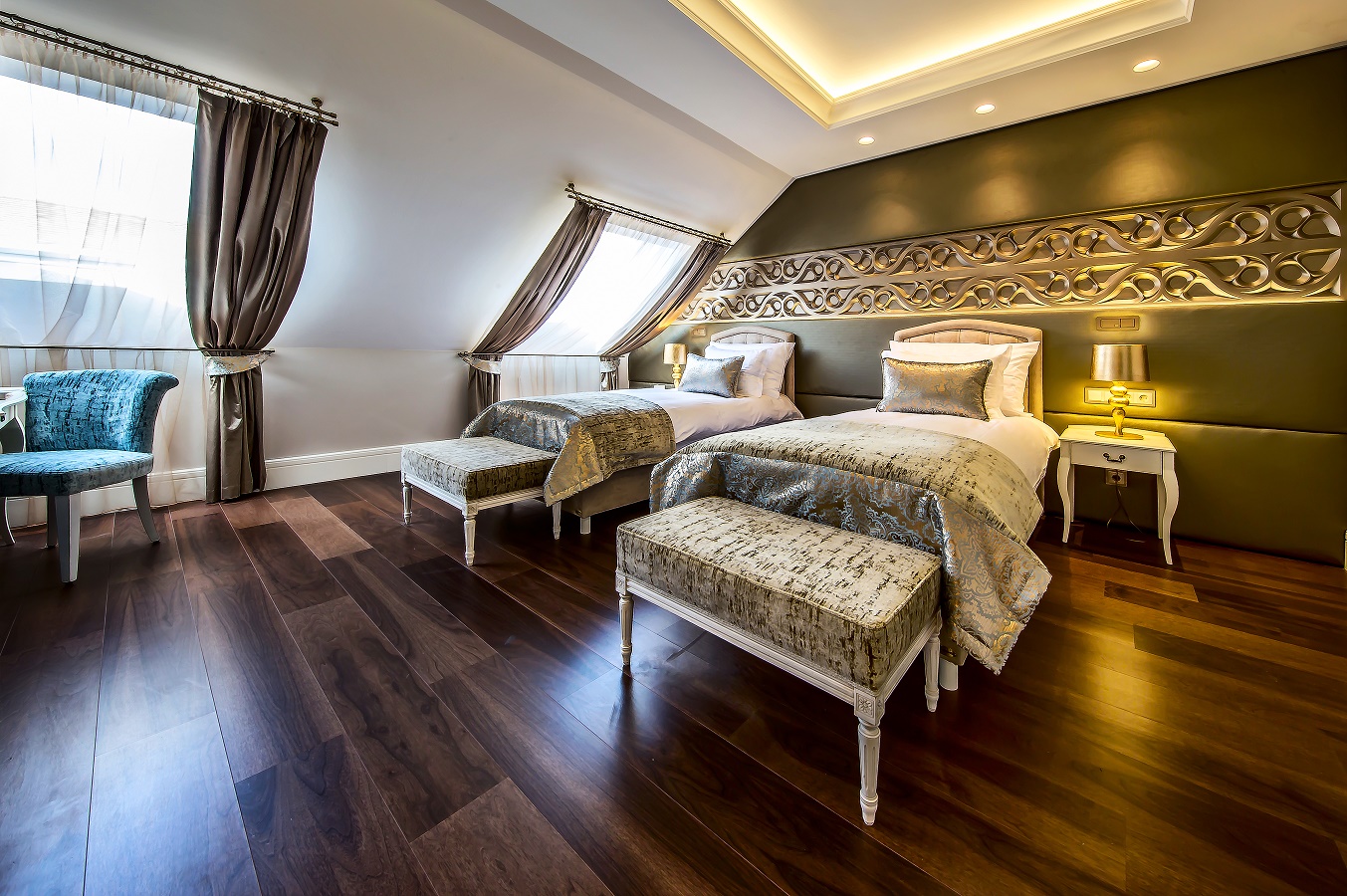 Set in a restored town palace, this is simply a stunning hotel, where you’ll be in wonder at the architecture and furnishings. From the moment you enter, the lobby atrium wows, with its perfectly polished floors, glittering chandeliers and plush velvet chairs – but the wow factor doesn’t stop here. Guest accommodations follow the same indulgent style, with rich tapestries and intricate décor.