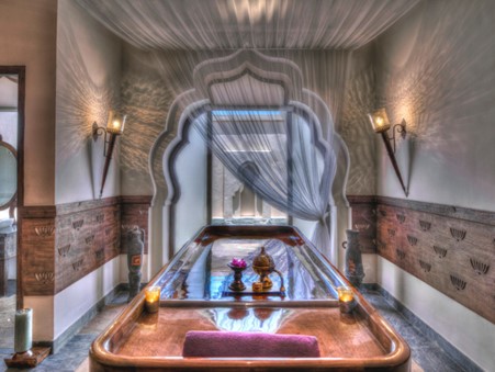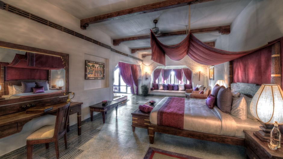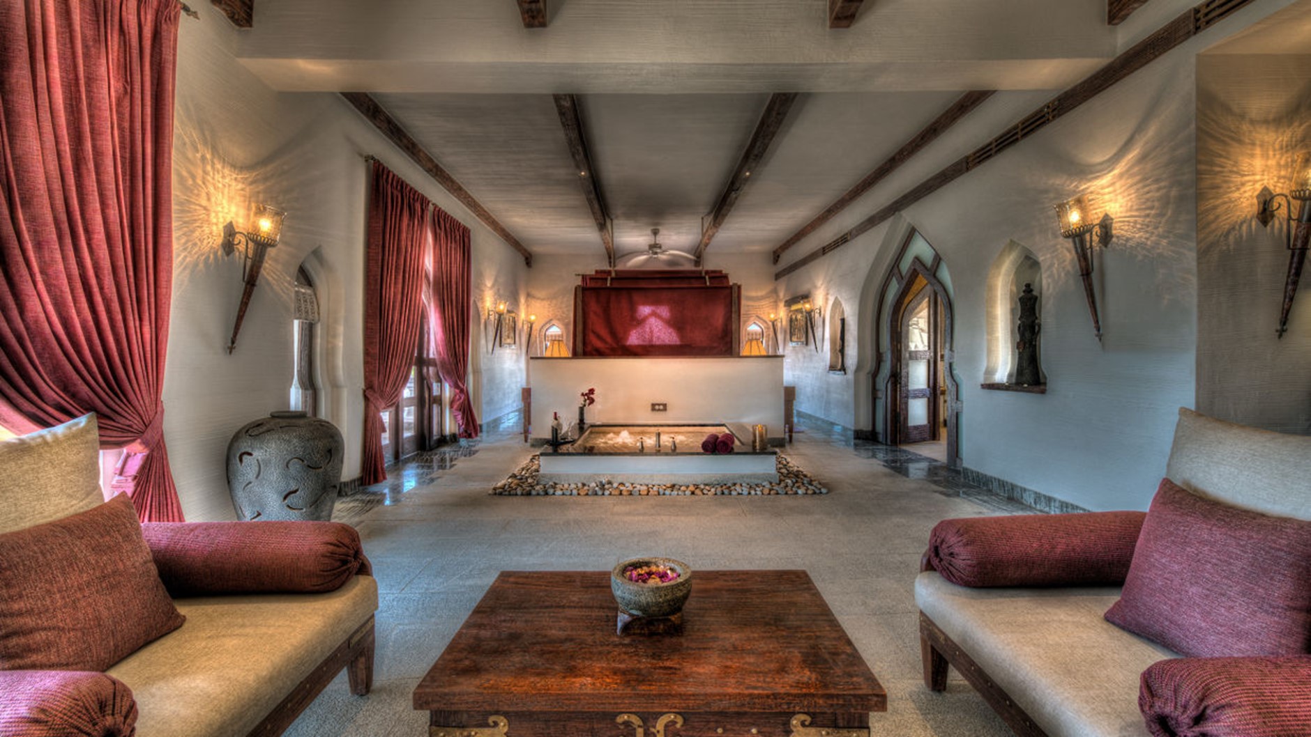 Nivasa Palace Suites are sublimely elegant, with stone floors and rich canopies and drapes enhancing the sense of royalty. There is an abundance of space, as each has a separate living and dining area, as well as a balcony and private shallow jet pool. For extra indulgence, upgrade to the Nilaya Terrace Suite or for the utmost in luxury, a Jal Mahal Villa with private pool.