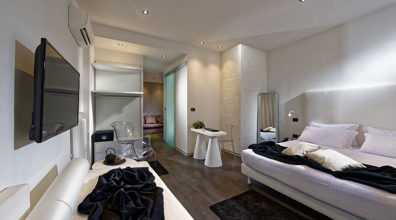 Highly recommended in the warmer months is a visit to the stunning rooftop terrace, overlooking the terracotta rooftops of Bologna and the hills beyond. The lounge bar here is the perfect spot to enjoy an afternoon coffee or an aperitif at sunset.