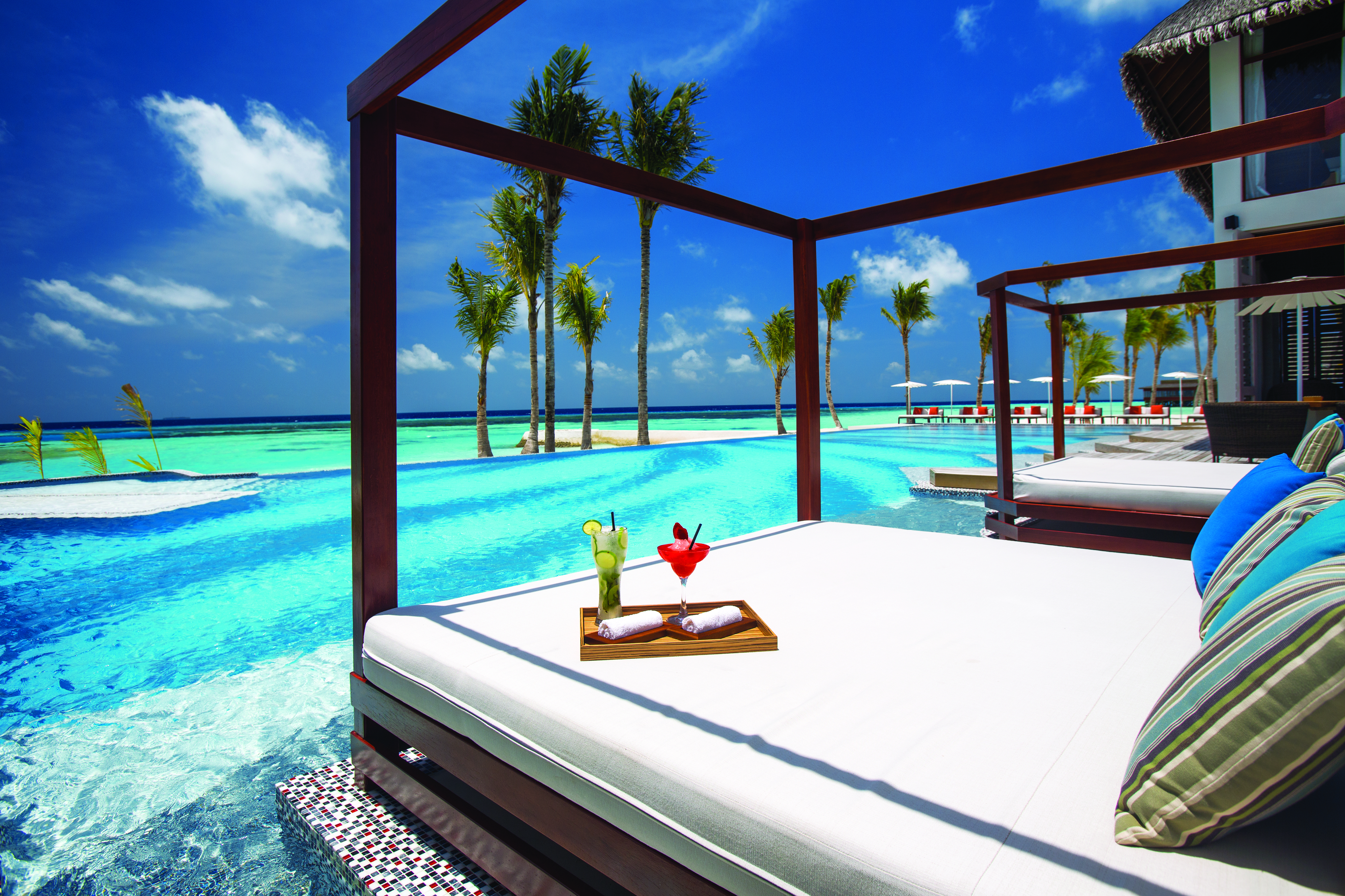 Each morning stroll down to The Palms, the resort’s all-day dining venue, for a champagne breakfast that’s served until a decadent 11am. Lunches can be enjoyed R.A.W, where health and delicious raw food meals are served; perfect in the midday heat, as well as at Joie de Vivre where you will find the lively poolside bar and pizzeria, which opens from early till late. Evening meals are a delight, with Indian and Chinese fare on offer. A truly special experience awaits at underwater eatery M6m; all guests staying at least four nights receive a complimentary meal in this unique setting.