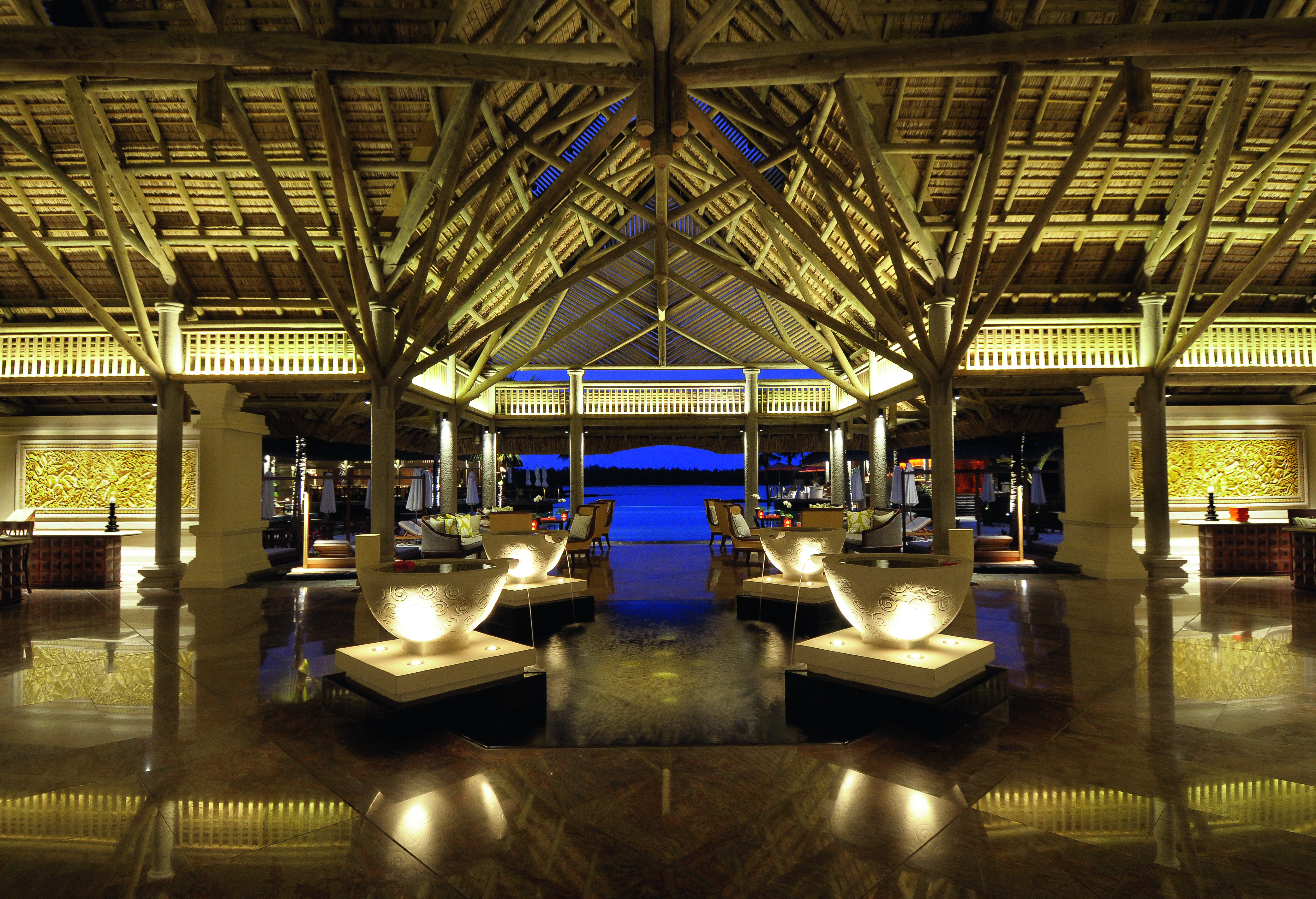 Low rise buildings, thatched roofs and reflective pools augment, rather than overpower, the natural beauty of their oceanfront surroundings.