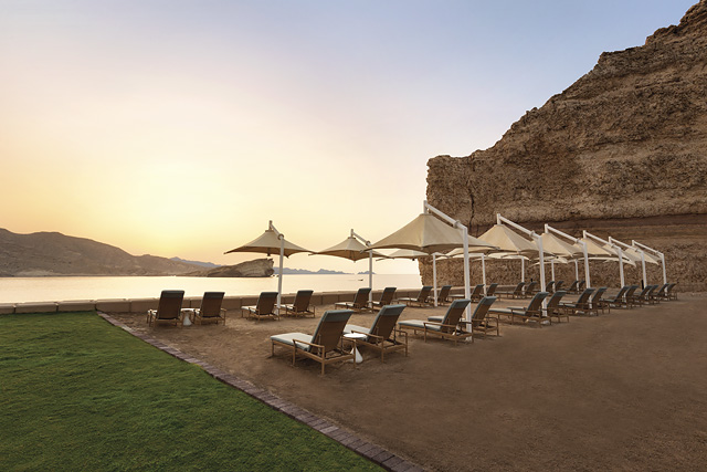 Entry level Deluxe rooms are amongst the most spacious in Muscat, offering seating area and large balcony or terrace, overlooking the pool or mountains. The attention to luxury is welcomed, with L’Occitane toiletries, Nespresso coffee machine, BOSE speaker system and daily fresh fruit and flowers. Sea view rooms can also be requested, as can suite accommodation, which even has amazing sea views from the bathtub too.