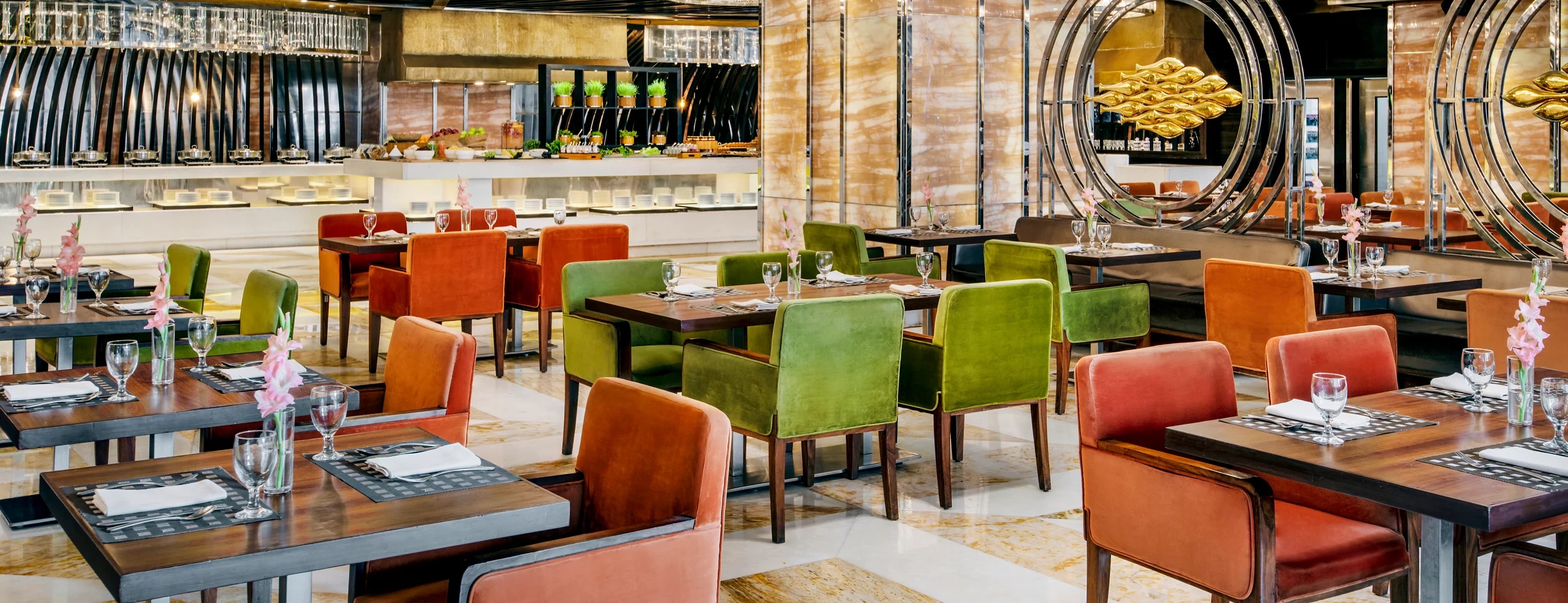 Step into the grand and expansive lobby, with its beautiful decorative flooring, where you will be greeted by the attentive staff. There is a superb choice of five restaurants onsite – from tempting Lebanese cuisine in the arabesque surroundings of Kabab-Ji, to authentic Chinese dishes at Lotus Court. The Black Opal team also highly recommend The Pakistani dining, with its colourful menu and live cooking kitchen.