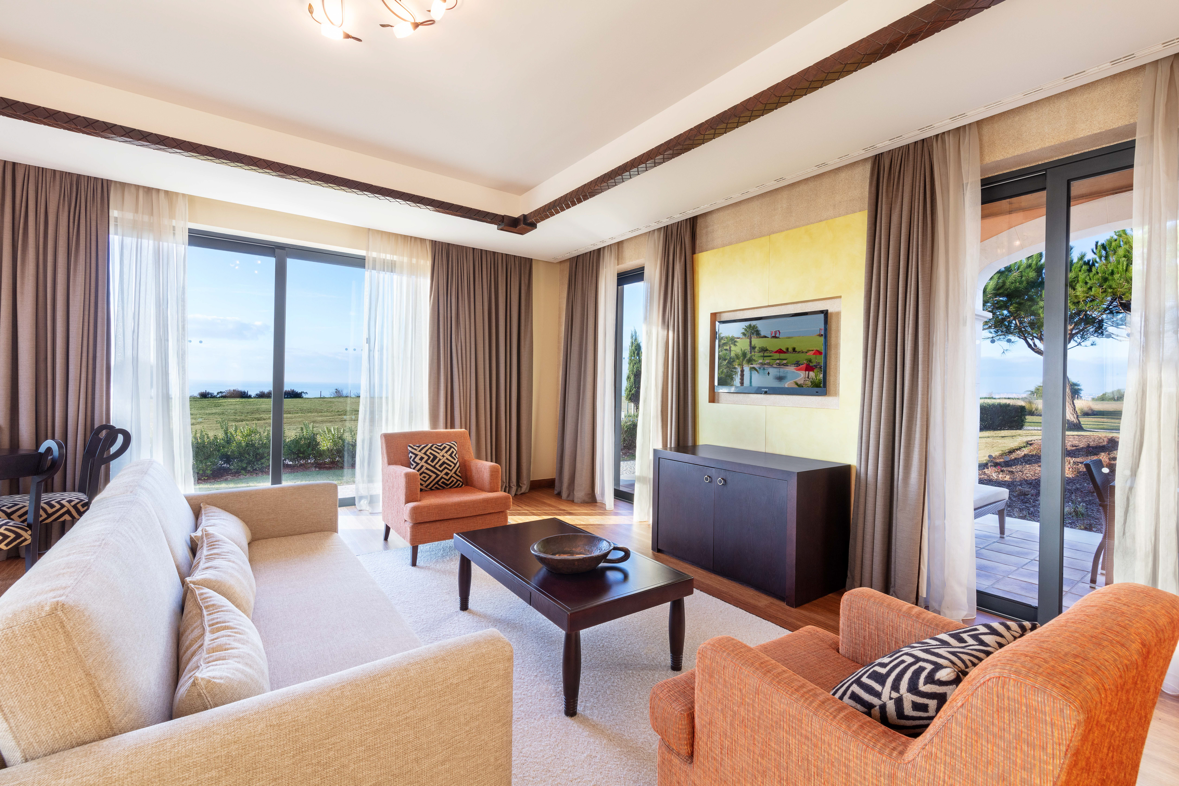 Refresh your body and mind at the opulent facilities on site – there’s a gym and spa, featuring an outdoor heated pool, jacuzzi, Turkish bath and ice fountains, with signature treatments also on offer. Fitness programmes and bootcamps can be tailored to your needs, or why not try hiking or biking the abundant outdoor coastal trails. For younger guests, in addition to the five pools, there’s a Caskiddy indoor and outdoor play area, plus an arena for football lovers.