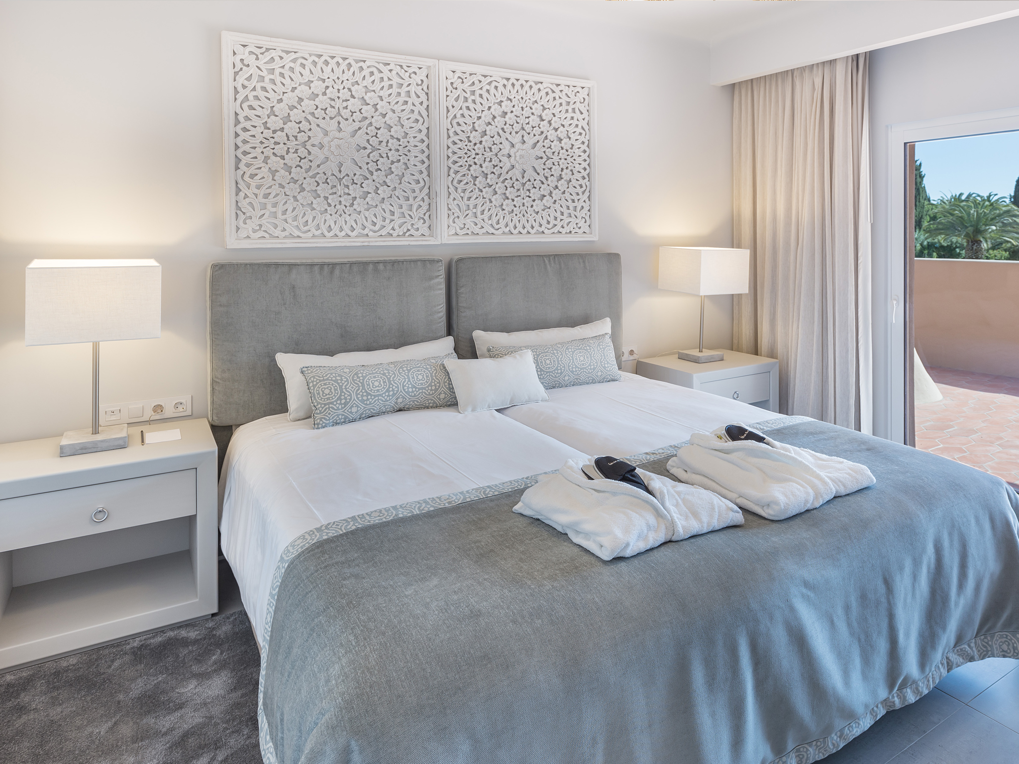 The spacious Junior Suites are designed for your complete comfort, with sitting area and furnished private balcony or terrace. Filled with natural light, the white décor adds to the space, with touches of colour. If you’re looking to indulge, ask our Black Opal team for some of the larger apartments here, great for families or larger groups.