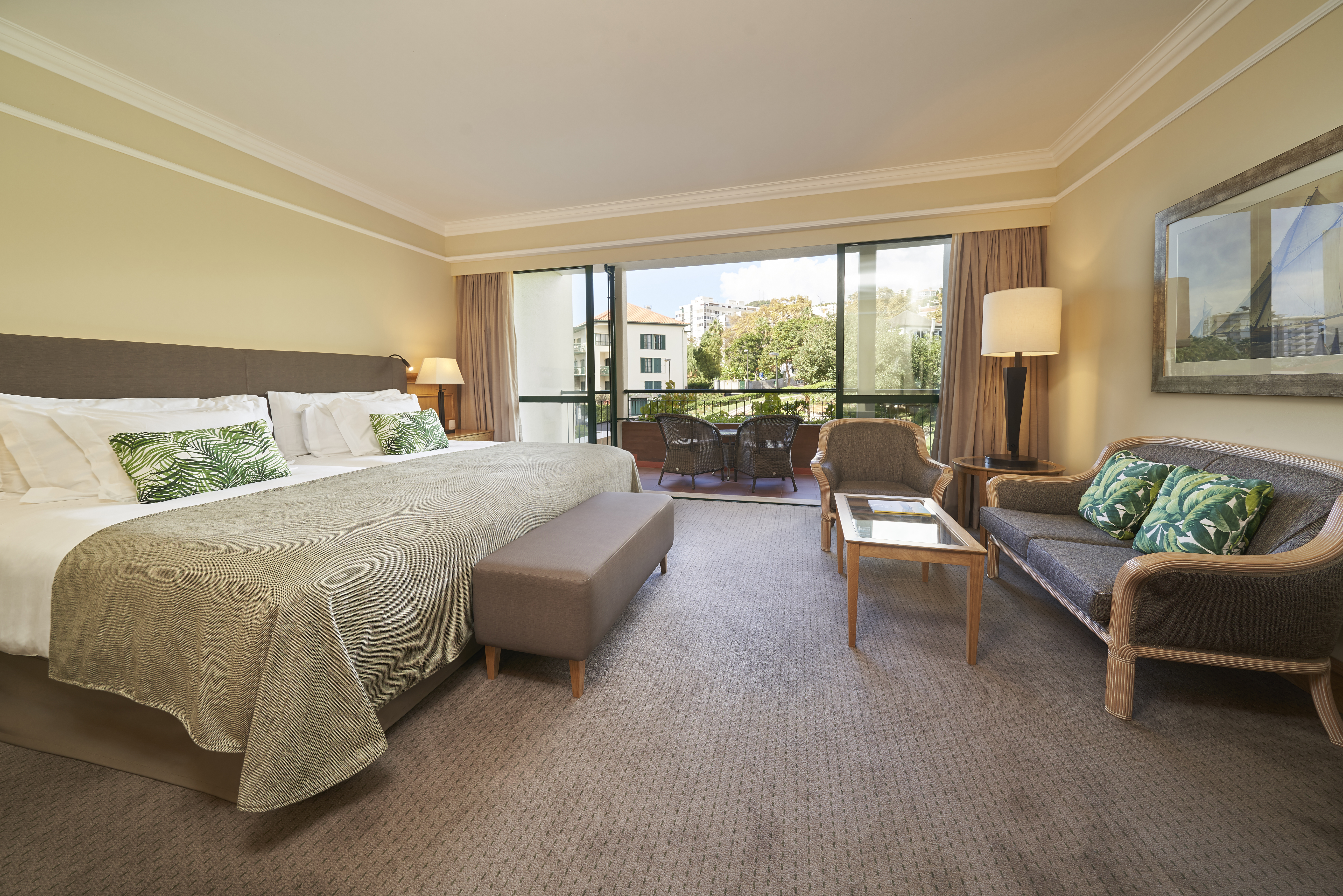 The guest accommodation blends natural greens and brown hues, in fitting with the treetop views and even standard rooms are spacious with seating area and a furnished balcony. Upgrades are available, to guarantee the best coastal views, or luxury all suite accommodation can be requested at the adjacent Les Suites at The Cliff Bay.