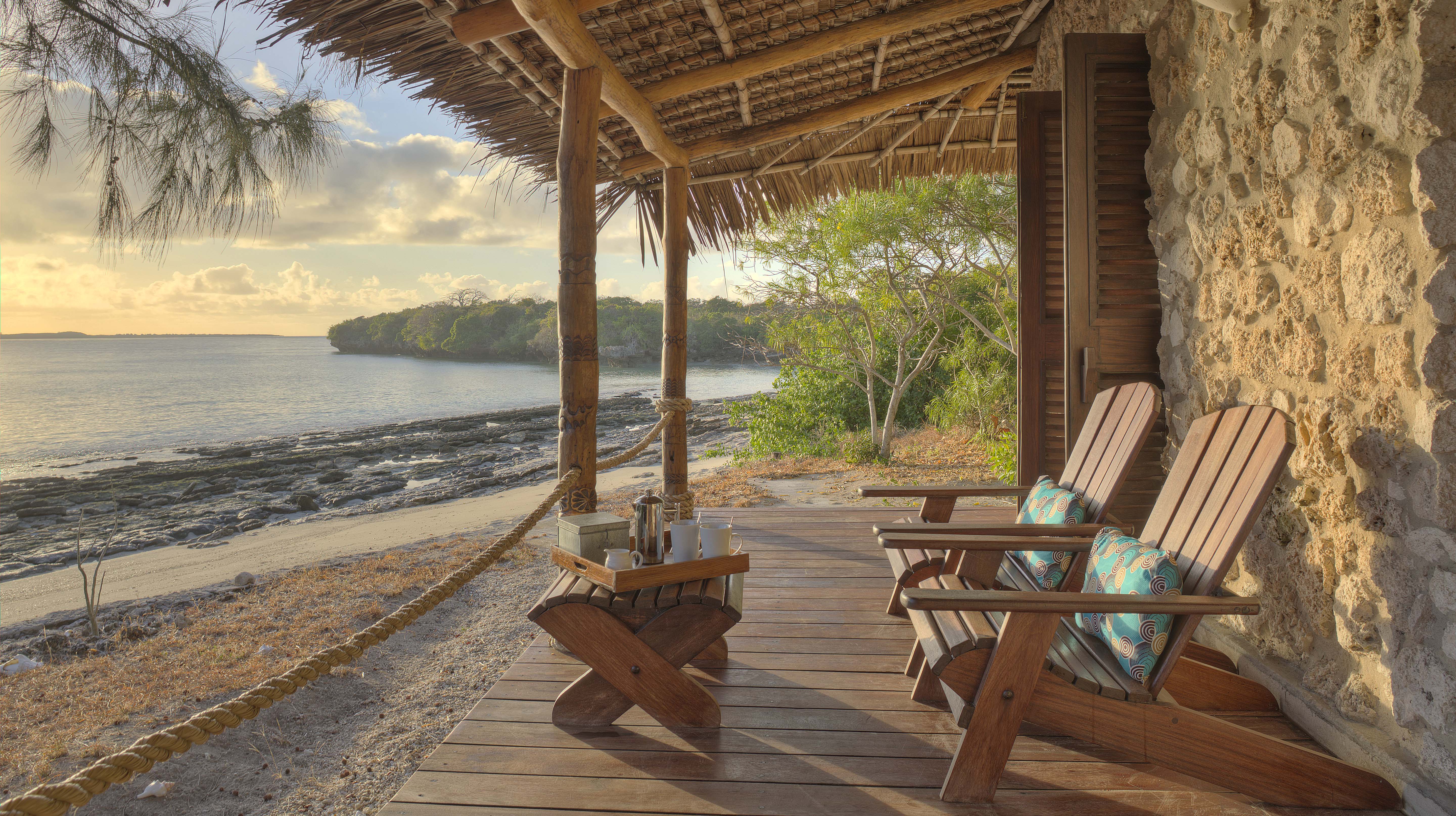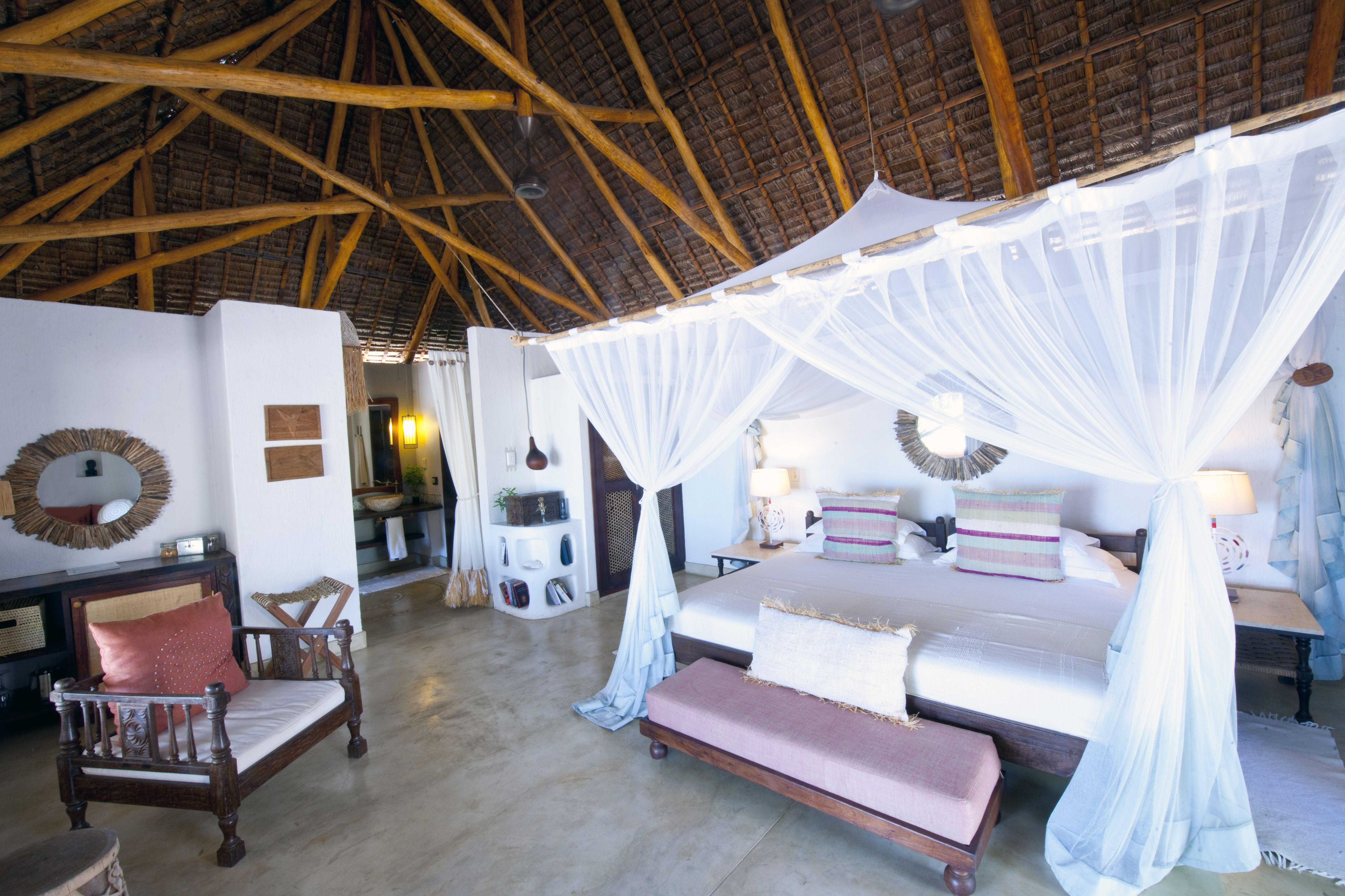 The nine seafront villas here are constructed from local materials - natural coral stone walls, makuti thatch roofs, carved beams and reed shuttered windows. The Kaskazi Villas have fantastic views across the turquoise waters to Quirimba Island, while the Kusi Villas have more secluded locations and feature an outdoor bush shower.
