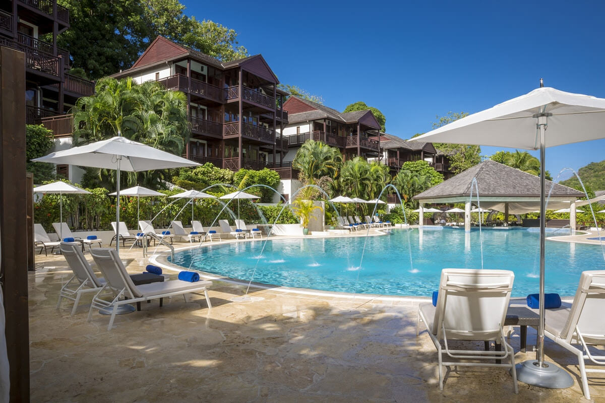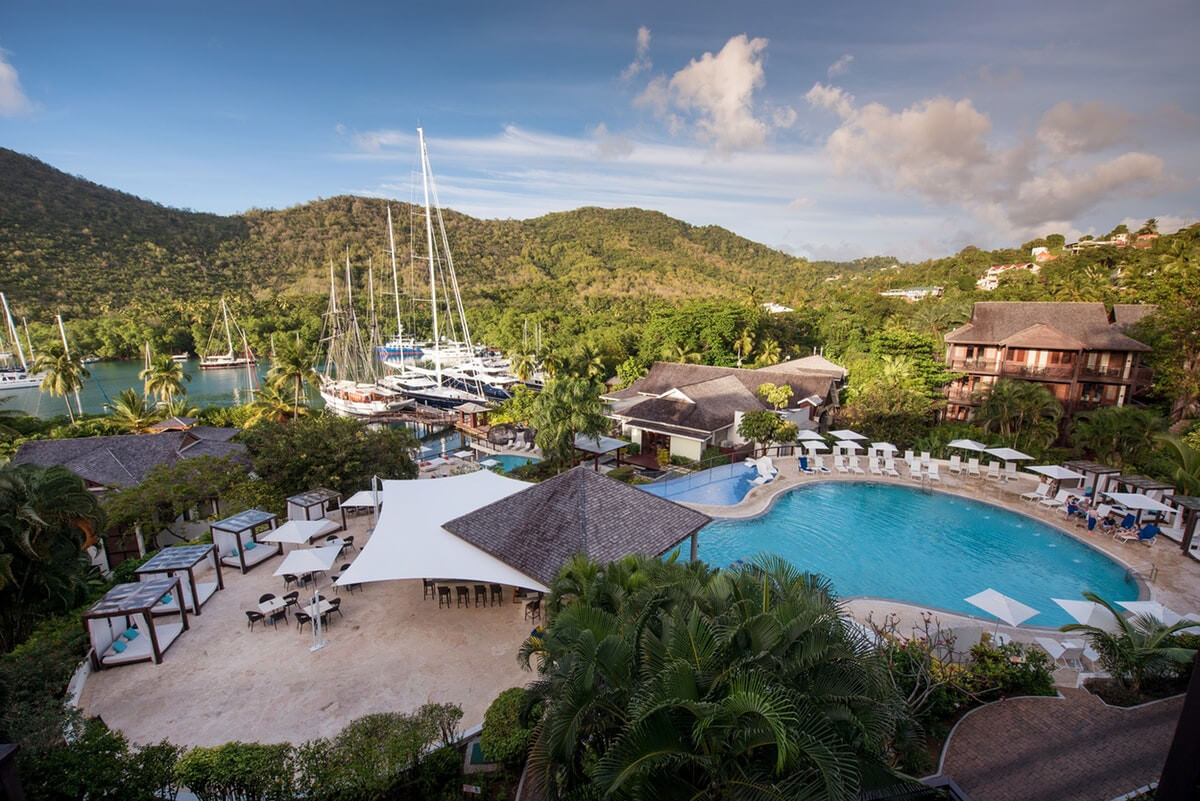 Set on a hillside overlooking the island’s most beautiful harbour, the turquoise waters of the Caribbean meet the tropical palm fronds here at the luxurious Marigot Bay.