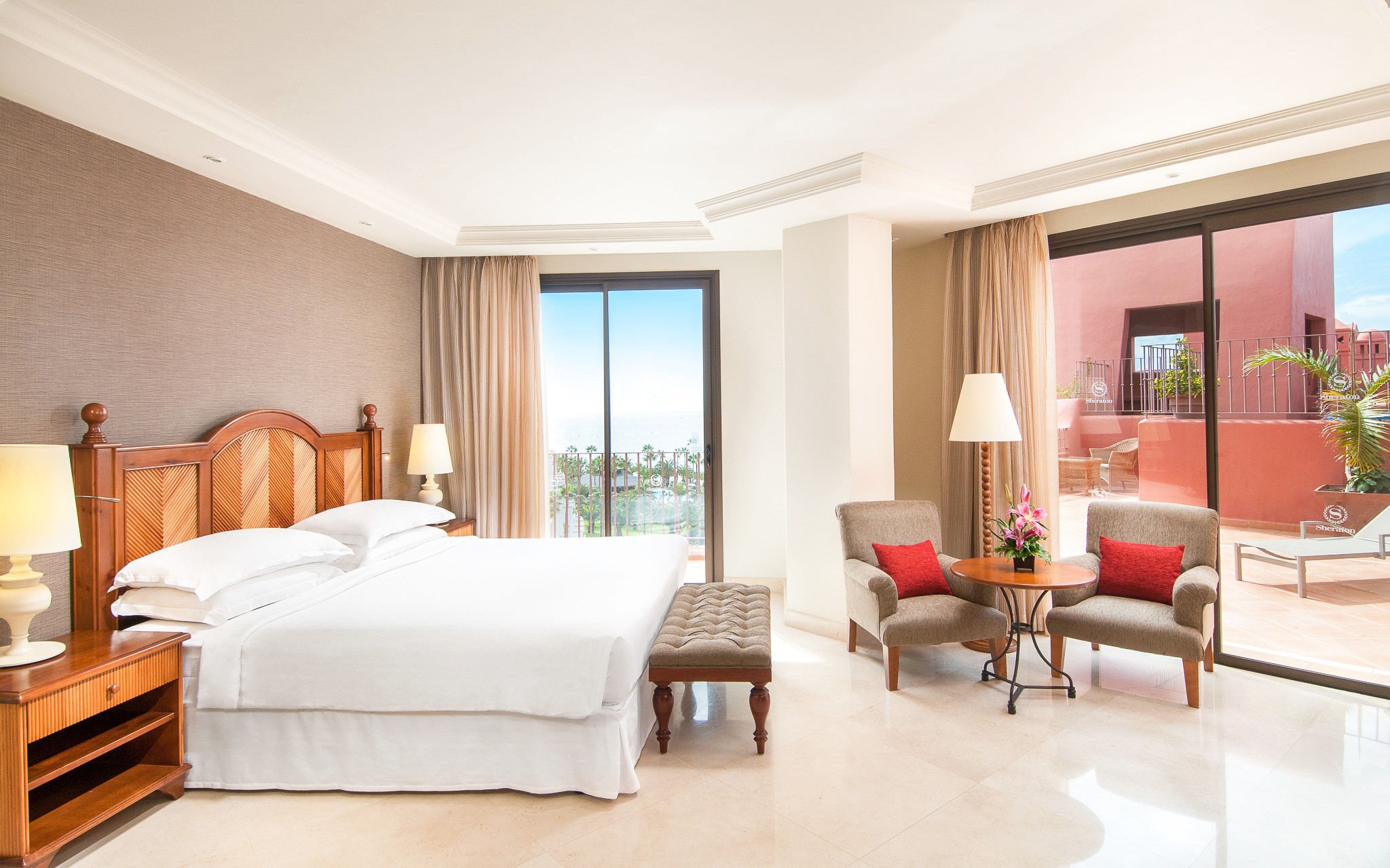 Set on the popular Costa Adeje, the Sheraton La Caleta offers a choice of stylish room types, with views looking towards the sea or the expansive tropical gardens, each with a private terrace area for guests to enjoy. For a special occasion, why not ask our team about the suite upgrade options, such as the Club Terrace Suite, with its corner setting and private outside Jacuzzi?