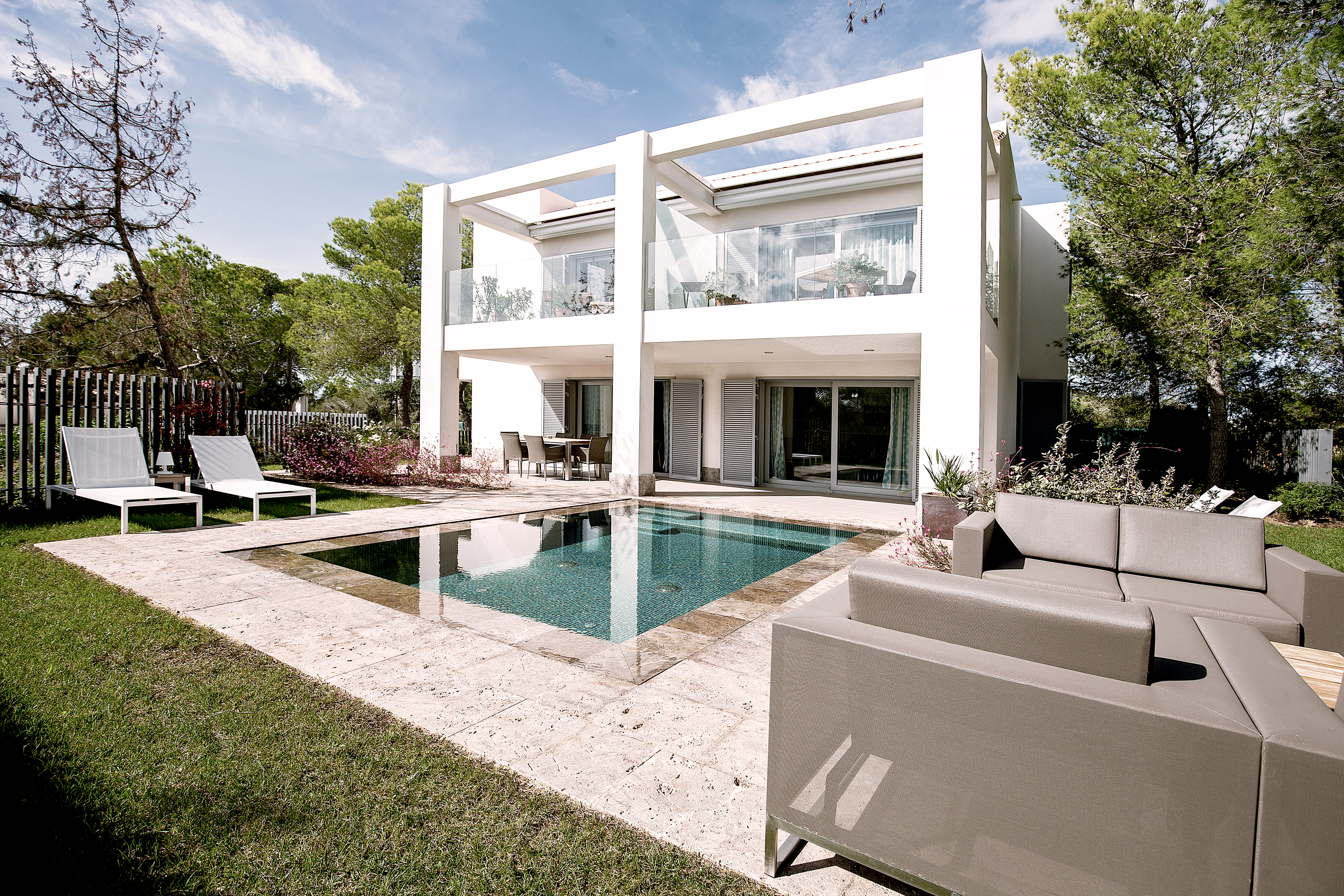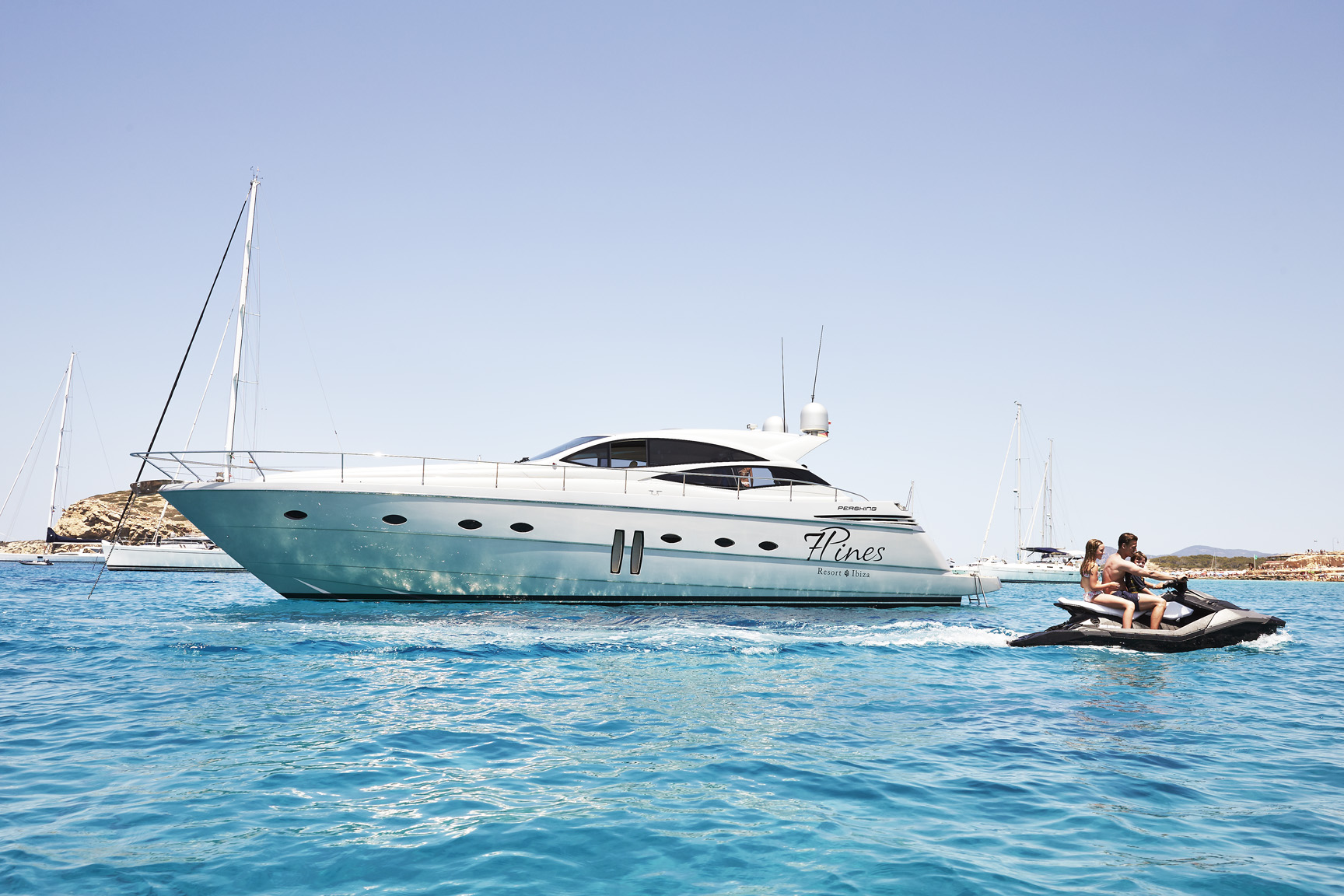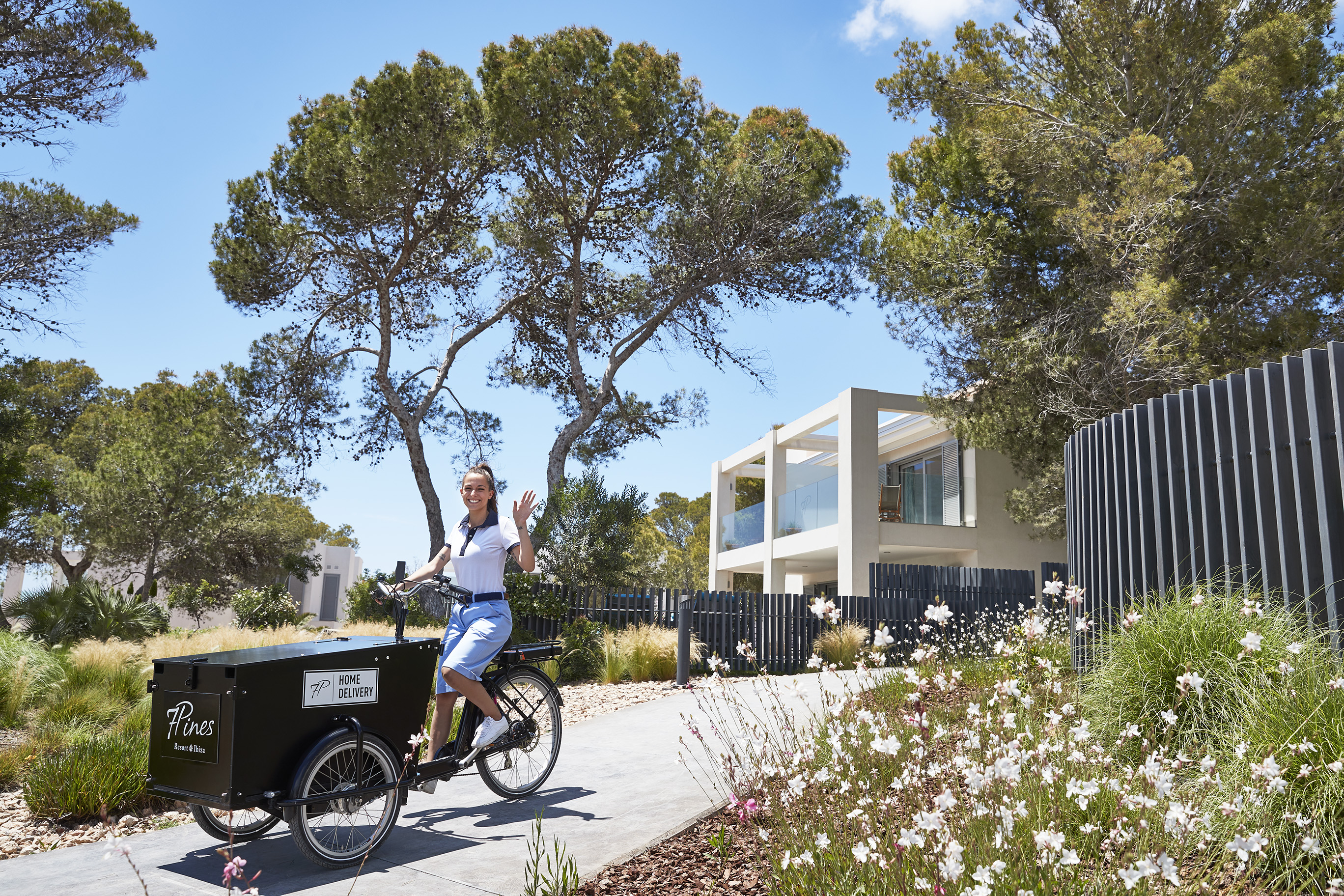 7 Pines enjoys a cliff side position looking out onto blue waters and bordered on one side by the forest that inspires its name. Just a five-minute stroll away you’ll find the secluded sands of Cala Codolar beach await, while renowned Cala Conta is within a 15-minute stroll away too.