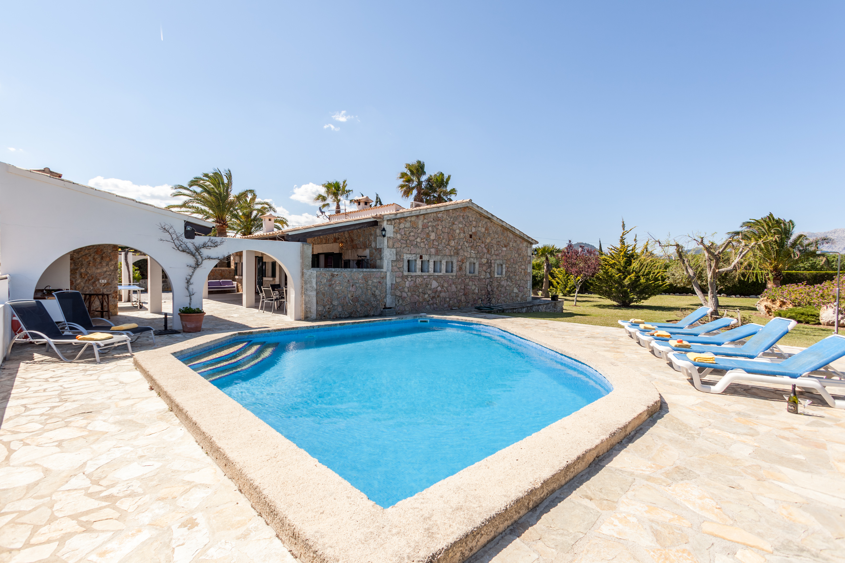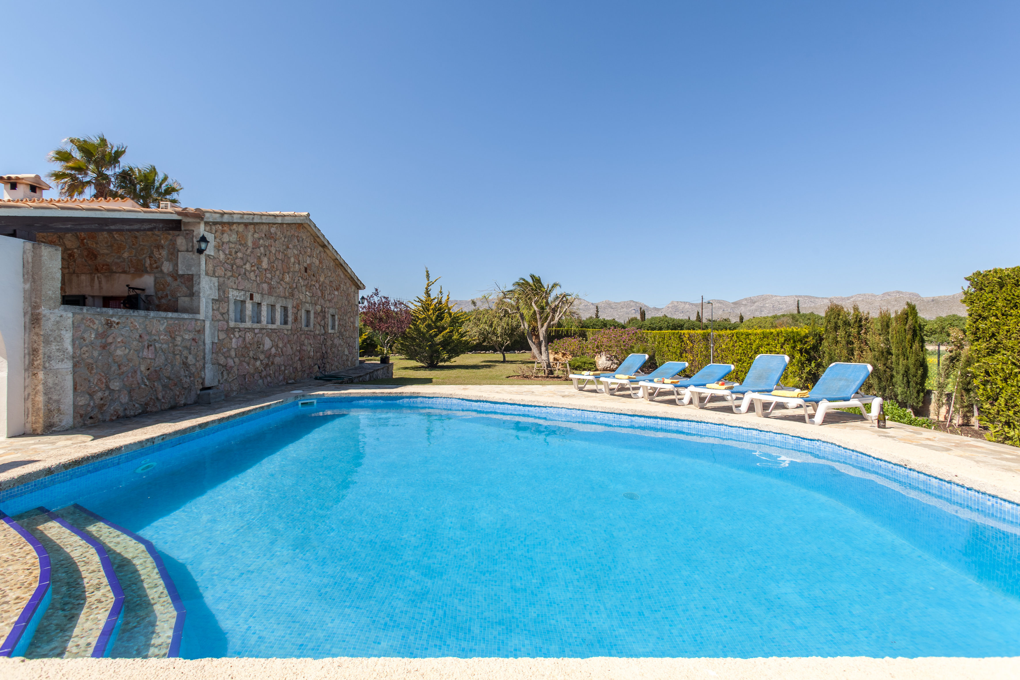 In a perfect spot, within easy reach of Puerto Pollensa and Alcudia, this beautiful villa offers a tranquil retreat, with its private pool, tropical gardens and mountain backdrop.