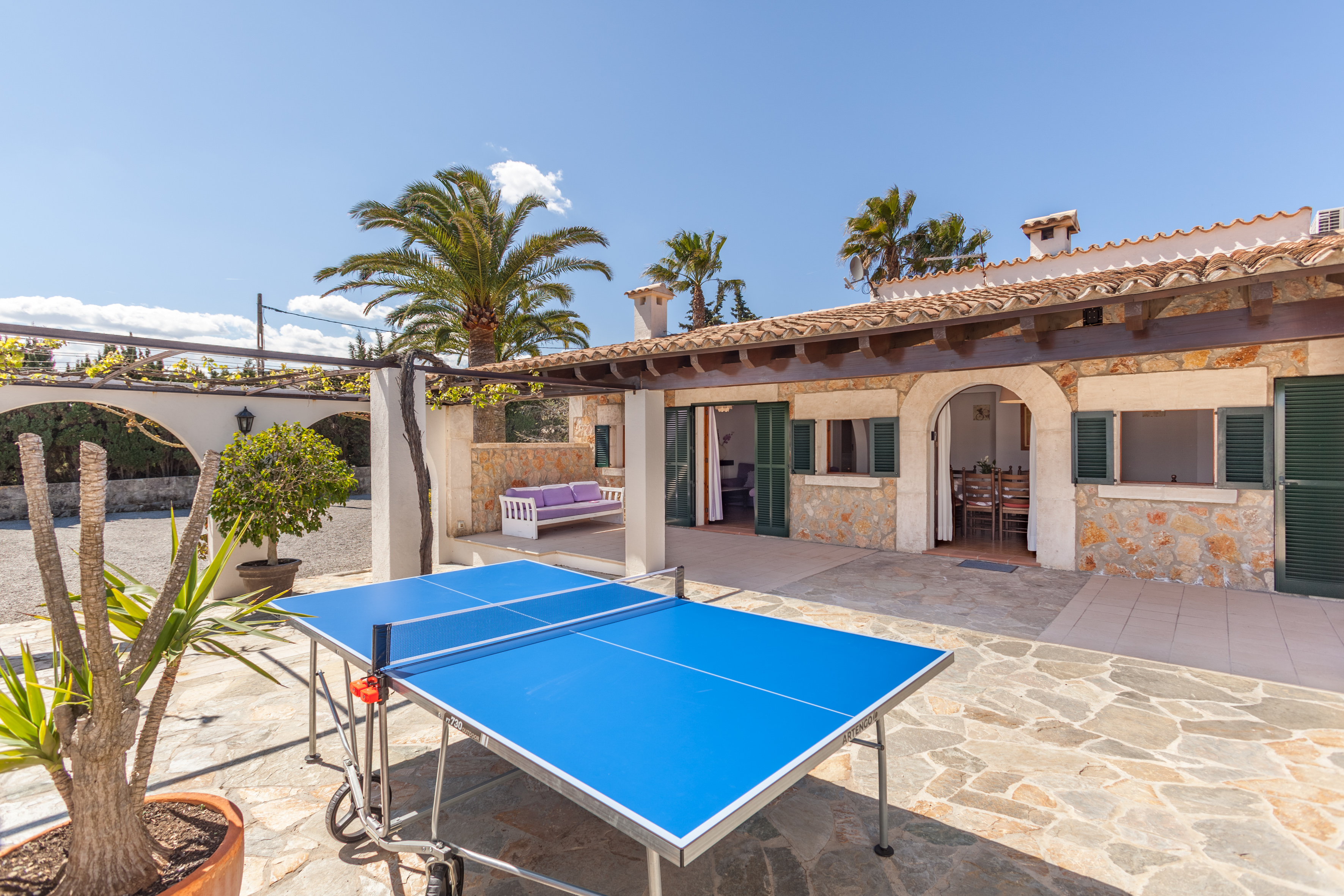 On arrival you’ll be greeted with the large, immaculate lawns, dotted with pretty Bougainvillea and palm trees, surrounded by hills. The lovely beach of Playa Can Cap Bou also is just a fifteen minute walk away.