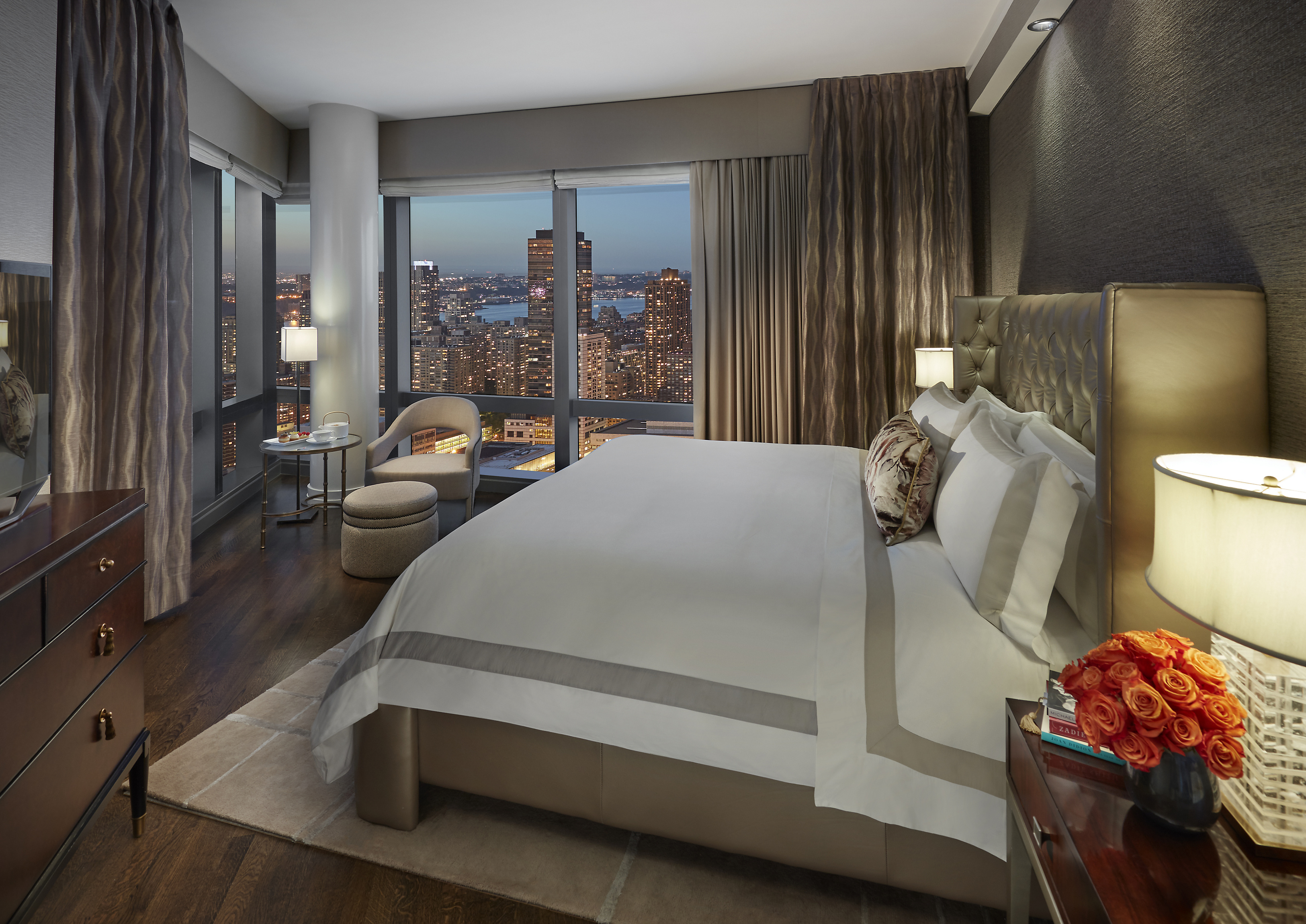 Rooms have a choice of views – city skyline and Hudson river or Central Park. The room decor features earth tones, plush fabrics as well as floor-to-ceiling windows. The rooms on the 38th and 39th floors offer guests incredible skyline views.