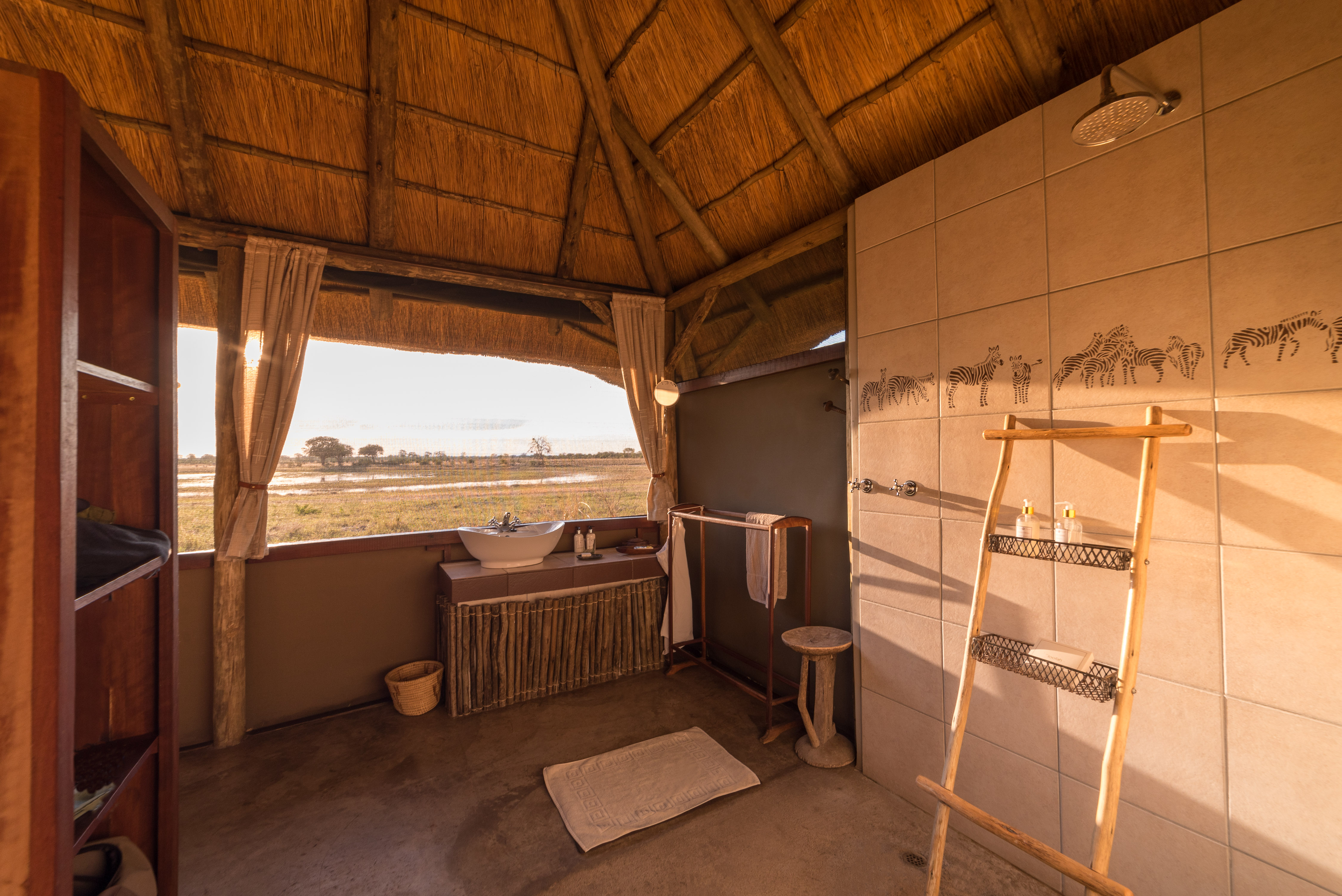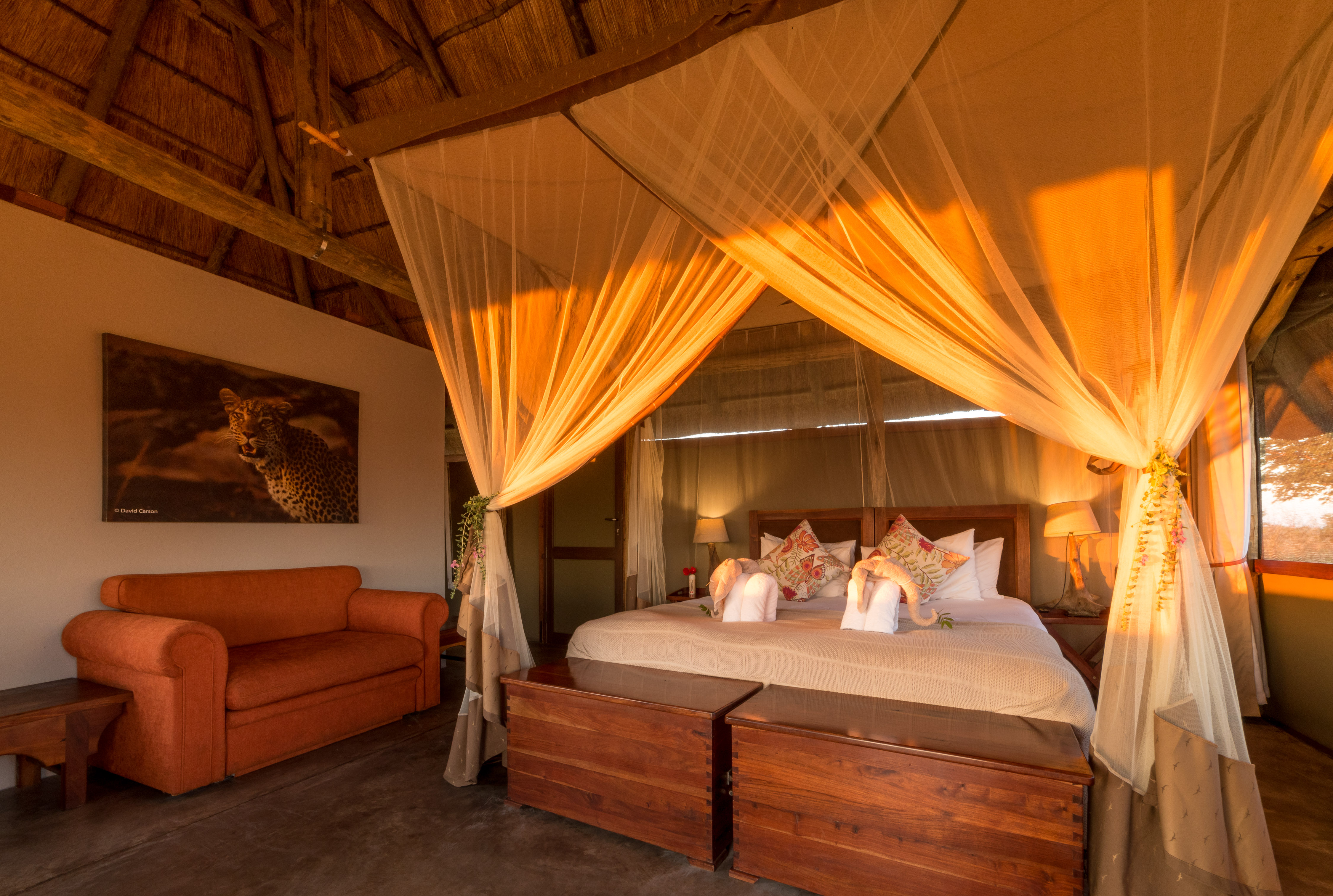 Guests are accommodated in just eight thatched chalets, all boasting en-suite bathrooms and private decks from where passing game can often be seen.